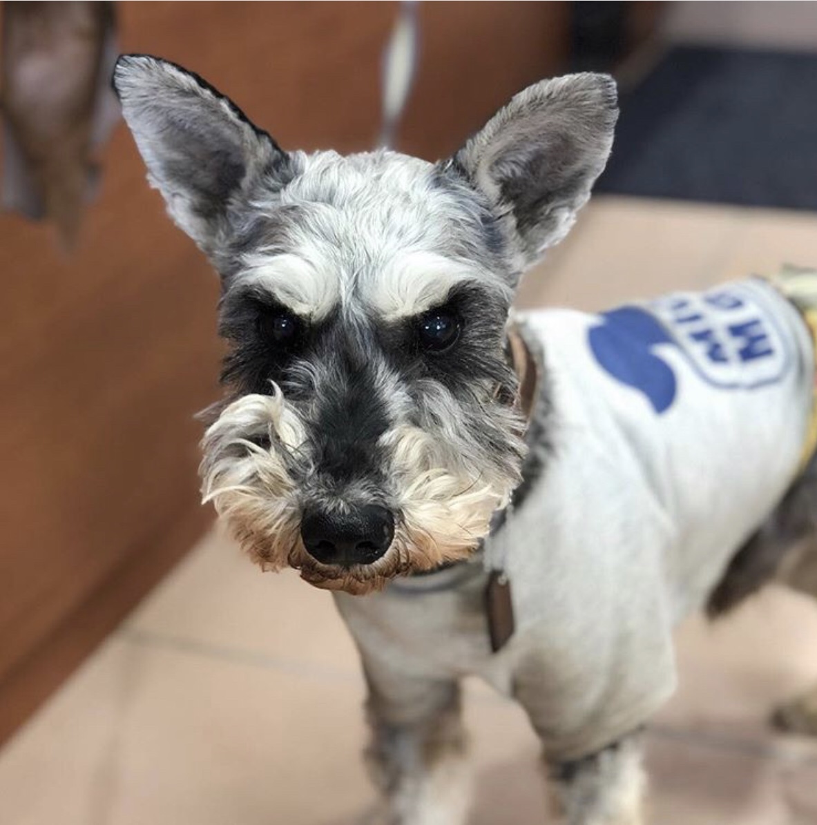 ミニチュアシュナウザーのタレ吉くんが来てくれました♡遠くからご来店していただきました(⁎ᴗ͈ˬᴗ͈⁎)鼻のまわりの毛はこれから伸ばしてまぁーるくするご予定です😄❤✨初めての場所でもいい子にできました😊🛁💕
