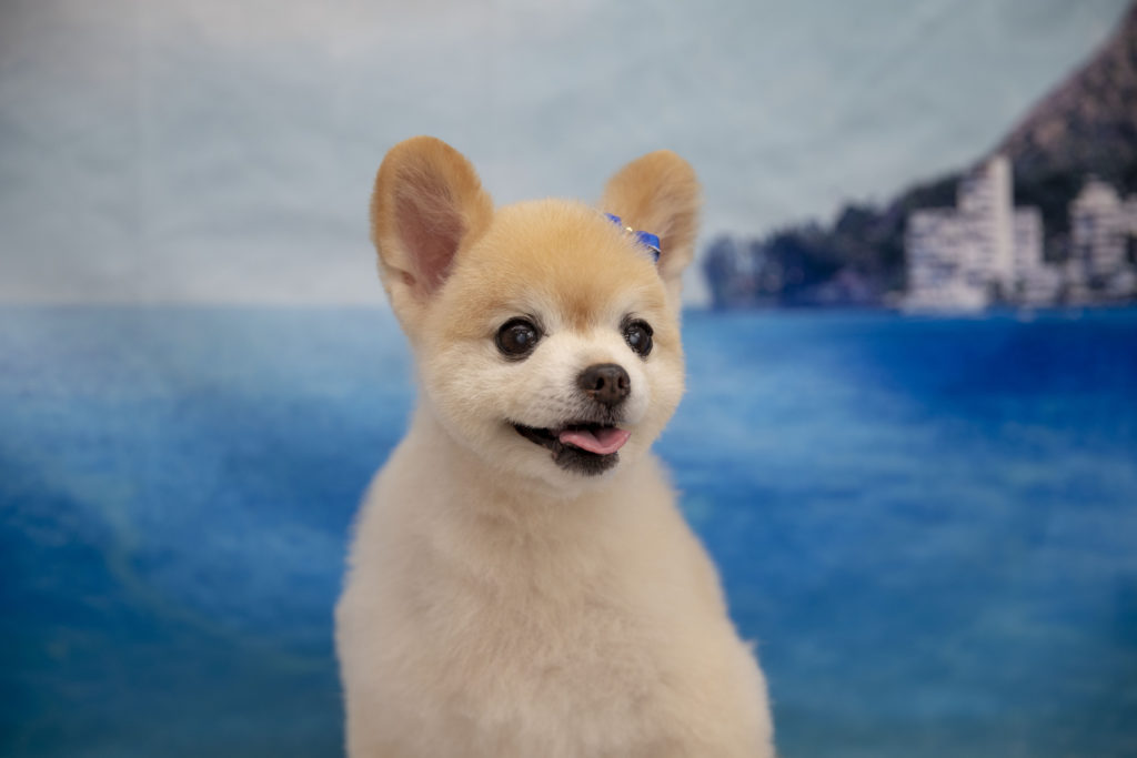 ファンタちゃんが来てくれました🐶青いリボンがとてもよく似合ってますね👍✨まん丸お顔がキュートです😆💗